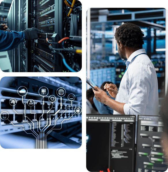 End-to-end architecture for servers, networks, virtualization, cloud, hybrid environments, and core IT systems.