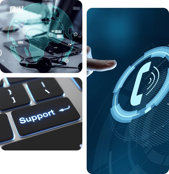 Support via email, phone, ticketing portals, chat, and integrated communication tools.